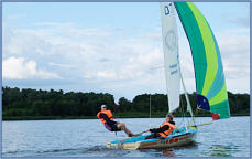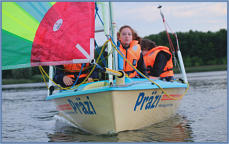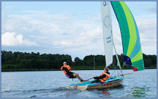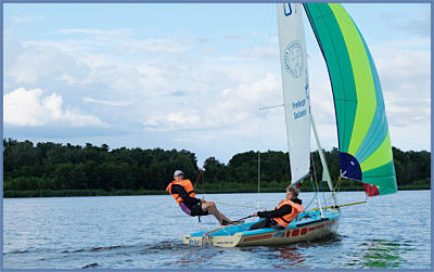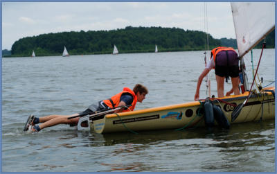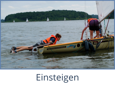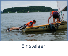 All das wird hier geübt:TrapezTrapezwant und Trapezhose anpassenTrapez-Trockenübung an Land2 Vorschoter: ins Trapez steigen auf beiden Bootsseitensicher im Trapez ausreitenGennakerGennaker richtig anschlagenGennaker auf dem See setztenGennakerführung als Vorschoter und als Steuermann/-frauoptimalen Windkurs mit richtiger Segelstellung erreichenGennaker-HalsenGennaker bergenRegattaeinfache Übungsregattaminimale GrundregelnRegattastartgegenseitiges Abgucken der besten Kurse und Segelstellungengeschickter ZieleinlaufKentern und Aufrichtensichere Abläufe in Theorie und PraxisÄngstlichkeit überwindenmit Köpfchen das Boot wieder aufrichtengegenseitig helfengeschickt wieder einsteigen