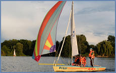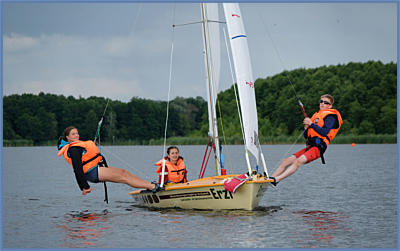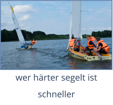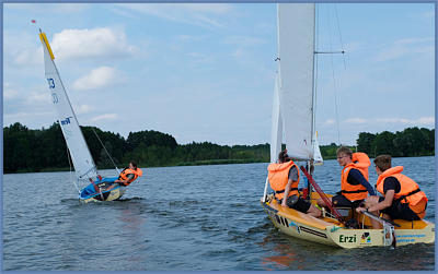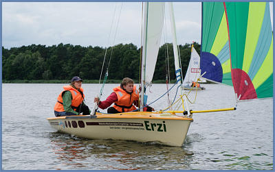 Das Jollensegeln voll ausreizen …Mit Gennaker und im Trapez über den See düsen - das kann bei uns lernen, wer den Grundschein erworben hat. Unseren großen Seetörn gibt es von Anfang an für alle Kursteilnehmer als erstes Regattaerlebnis.Das Kentern und Aufrichten üben wir freiwillig oder unfreiwillig - je nachdam, was eher eintritt ;-)